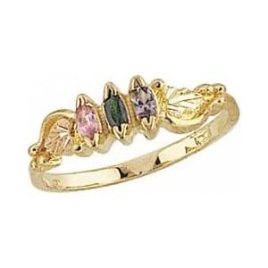 Beautiful! 10k Yellow-gold Authentic Black Hills Gold Mothers/Family rings with 2-6 stones. This has been a very popular Family/Mothers rings for many years. The birthstones are 4x2 MM Marquise SYNTHETIC stones set in a secure setting. All stones have a very genuine look to them and is very hard for anyone to be able to tell the difference. 2-6 stones are all the same price. Pick the finger size from the drop down window and then you can put the birthstone information in the Gift Message section as you check out. Please refer the stones to MONTHS only. The manufacturer will set the stone that represents each month. Or mail us at richpeel@aol.com as how many birthstones and the order that you want them place -- from side to side. 7-10 days needed to make the ring, set the stones and then ship. Lifetime warranty from the manufacture